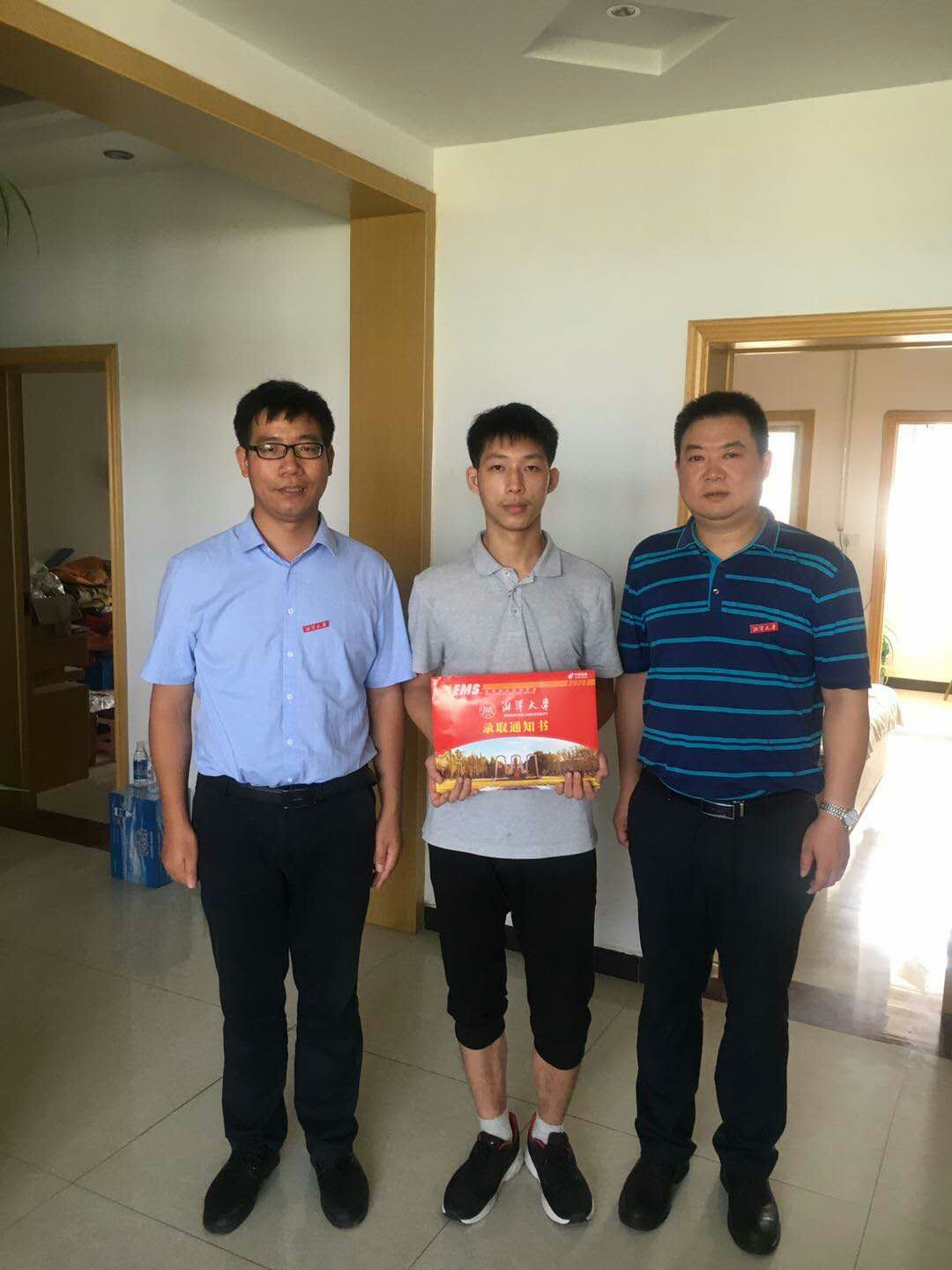 8月30日下午,招生就业处副处长王向前、我院教工第二党支部书记兼2020级材料物理专业班主任刘应都代表学校跨越千余里,将我院首份录取通知书送到了2020级材料物理专业新生王恩洋手中,并表达了对其家人的殷切问候。