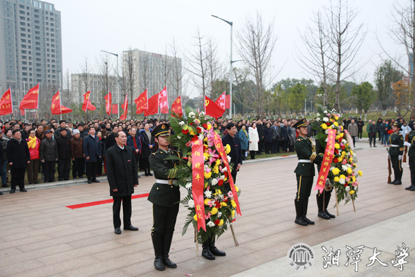 中国工程院院士欧阳晓平,校长李伯超,副校长郑赤建、刘建平、刘长青,湘潭经开区党工委副书记、管委会主任黄韧,高新区管委会副主任吴小波,蓝思科技股份有限公司董事长助理彭孟武等出席缅怀活动。