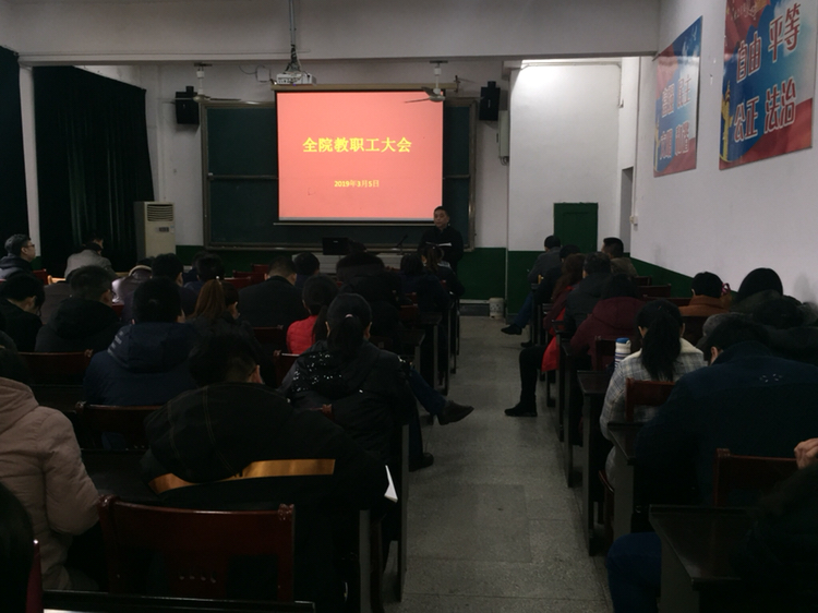 3月5日下午,yl23455永利官网新学期第一次全体教职工大会在二教319会议室召开。全体院领导、教职工参加会议,会议由院党委书记谢胜文主持。