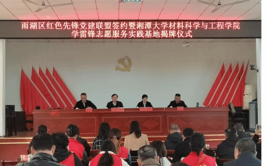 为大力弘扬“奉献、友爱、互助、进步”的志愿精神,引导青年大学生深刻理解“从群众来,到群众中去”的价值内涵,展示青年的蓬勃力量,3月2日上午,yl23455永利官网与先锋街道隆重举行红色先锋党建联盟签约暨学雷锋志愿服务实践基地揭牌仪式。材料院党委书记胡义伟、党委副书记罗兆祥、先锋街道党工委书记黄艺出席,学院师生代表、街道班子成员、部门负责人、村(场)社区书记及专干参加并见证。