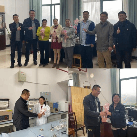 一大早,伴随着阵阵花香,材料大楼出现了温情一幕——党委书记胡义伟、党委副书记兼工会主席罗兆祥、各分工会小组组长亲自为女职工们送去节日的鲜花和祝福,感谢她们在各自岗位上的辛勤耕耘。