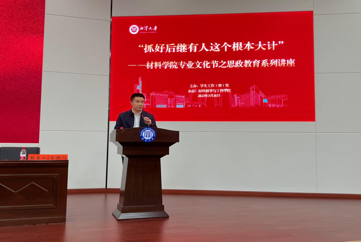 刘建平副校长指出,湘潭大学是一所底蕴深厚、文脉绵长的综合性大学,同学们身处其中,应同步提升学科素养和思想品格,广泛摄取知识,提升品格、学识和实践素养,成为德才兼备的社会主义接班人,为社会主义现代化建设做出贡献。