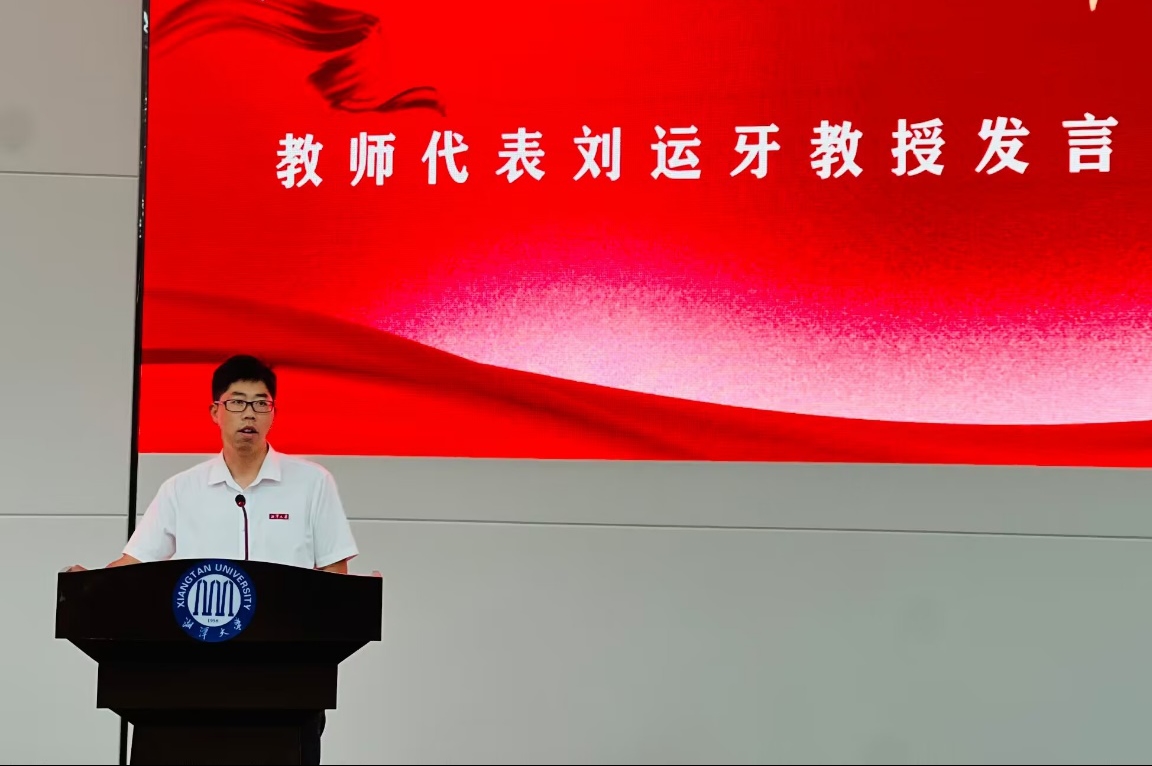 刘运牙教授作为教师代表发言,“出生于新时代的你们,个性鲜明、视野开阔、知识丰富,这些特质都将在校园里得到进一步的激励。”他寄语同学们要认识自己、认可自己、超越自己,除了有“顶天”的豪情壮志,更要有“立地”的踏实与坚韧,在平凡中寻求非凡。