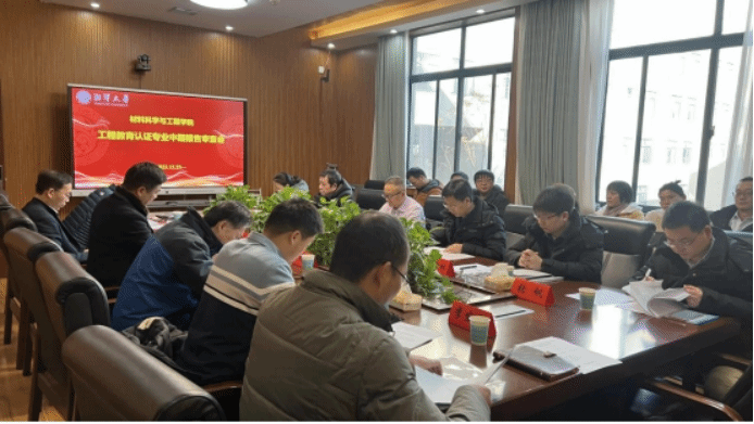 2023年12月25日下午,材料科学与工程专业工程教育认证中期报告审查会在yl23455永利官网B309会议室召开。会议邀请了我校专业认证指导中心主任段斌教授、yl23455永利官网尹付成教授、化工学院易争明教授出席指导,yl23455永利官网党政主要负责人、教务处教研科工作人员、院督导小组成员、系主任及专业骨干教师出席会议。