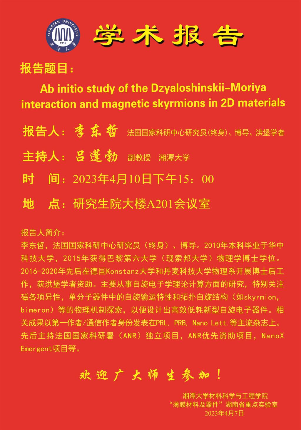 报告人:李东哲 法国国家科研中心研究员(终身)、博导、洪堡学者