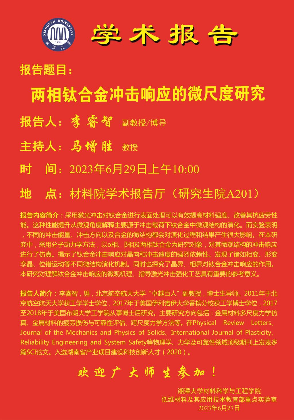 报告人:李睿智 副教授/博导