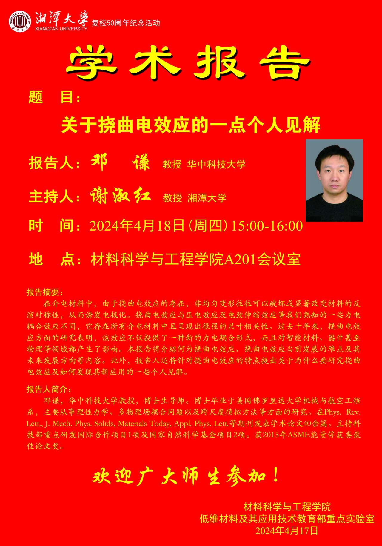 报告人:邓谦 教授 华中科技大学