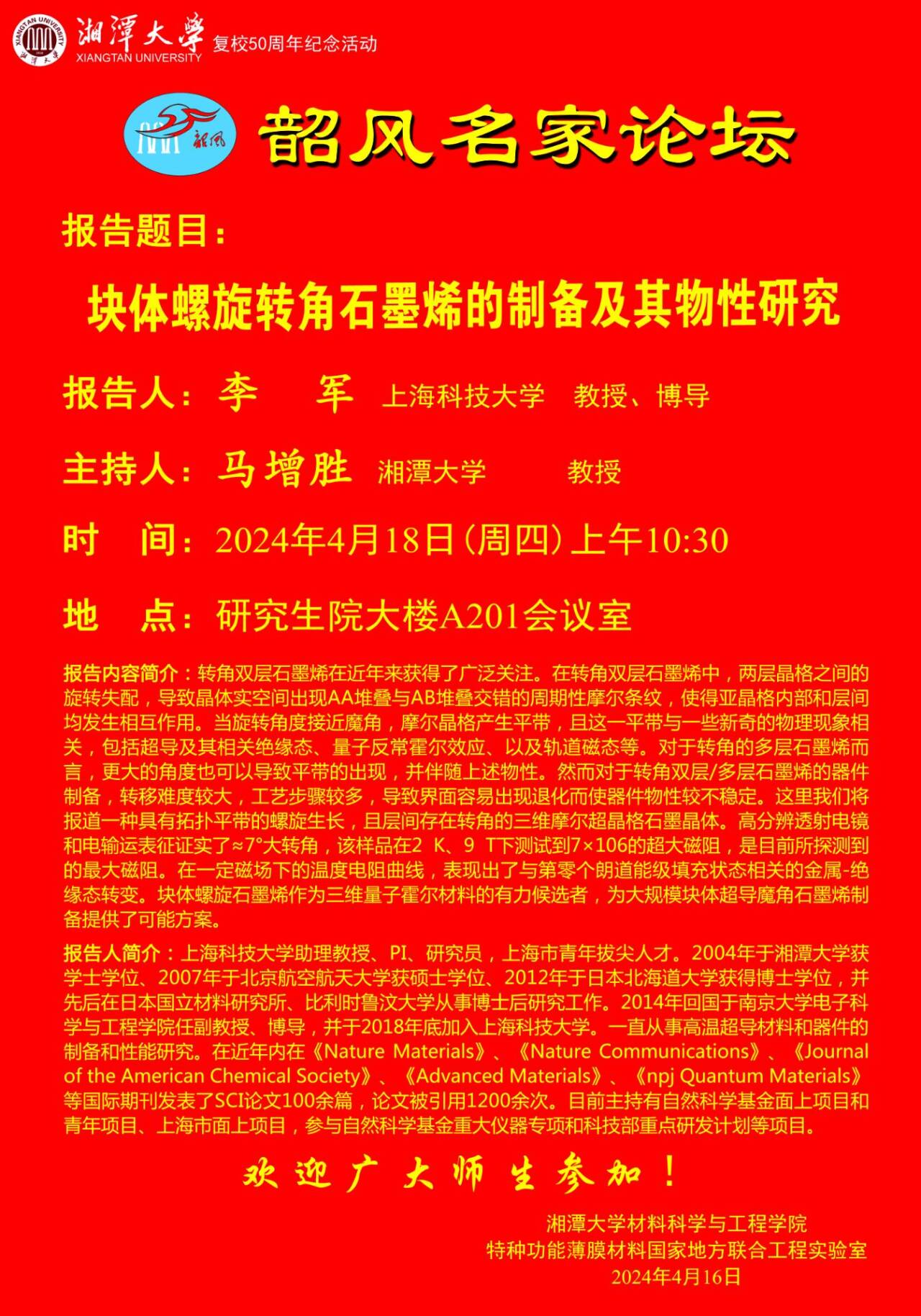 我院顺利开展“材风竞起,料想四溢”学科竞赛讲座