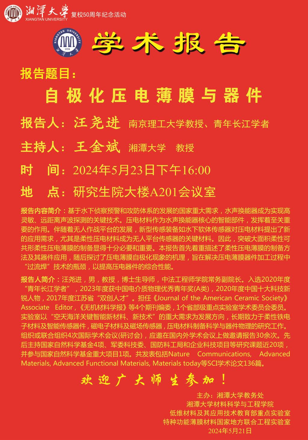 报告人:汪尧进 南京理工大学教授、青年长江学者