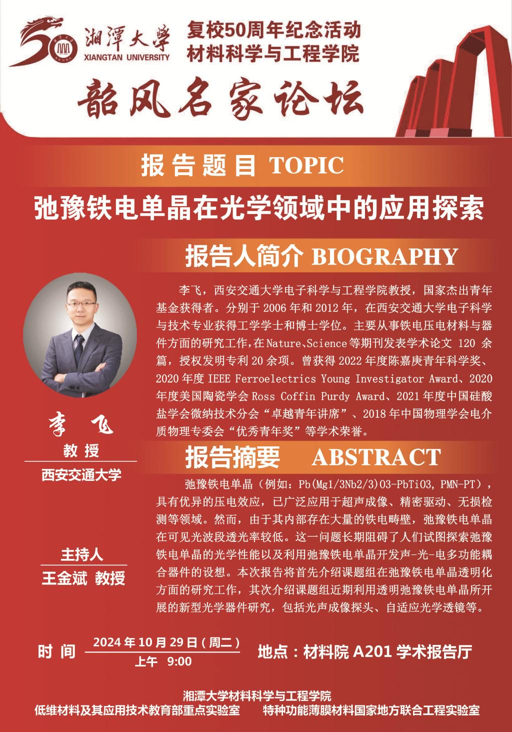 报告人:李飞 西安交通大学 教授