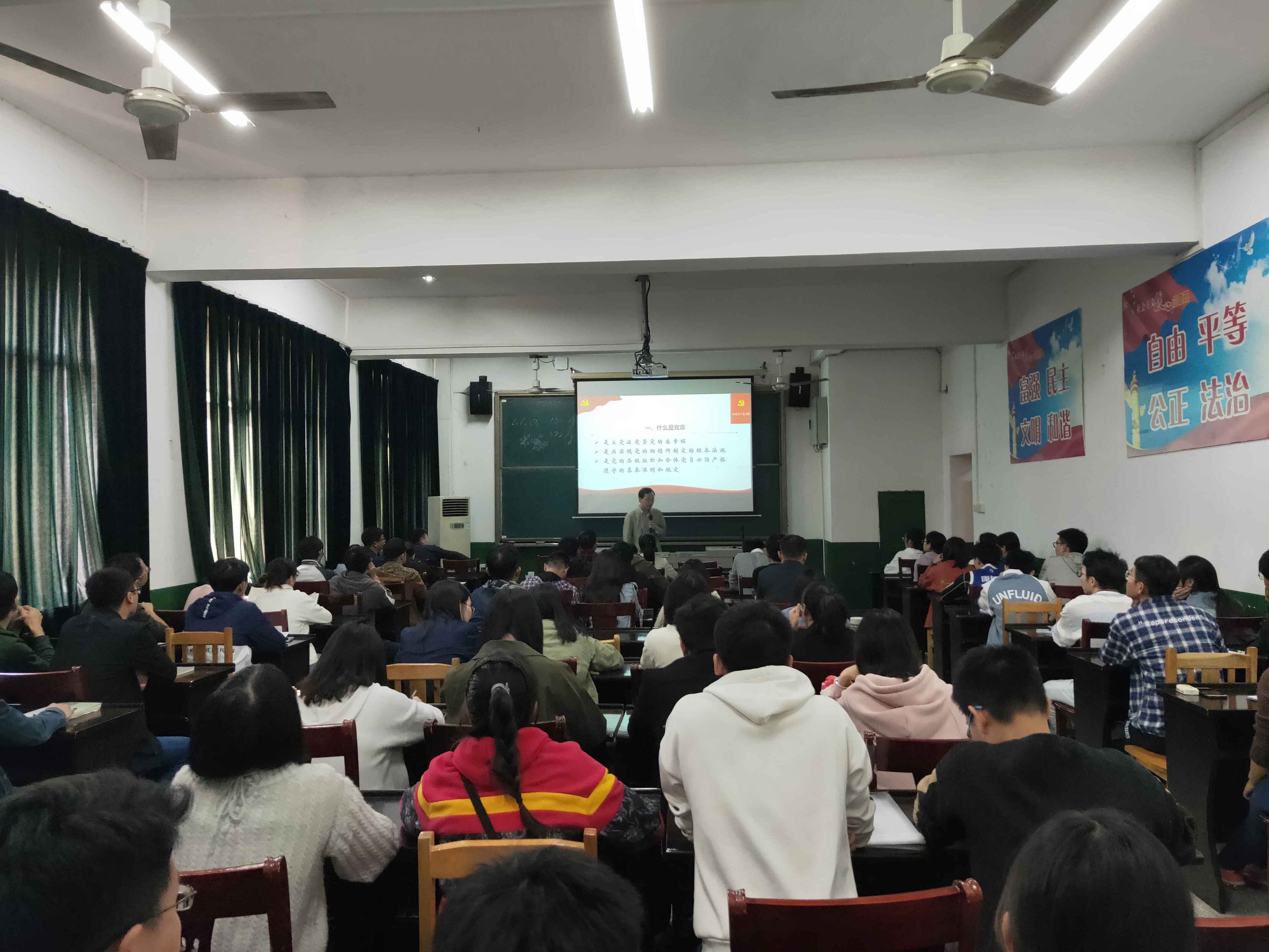 胡义伟以时间为线索,以党的历次全国代表大会为主线,分革命时期、建设时期、文革时期以及改革开放时期四个阶段,带领党员深入学习了党章光辉的发展历程,并着重从十九大新写入党章的习近平新时代中国特色社会主义思想、中国梦、人类命运共同体及一带一路等十个方面,结合历史和现实,向党员生动的阐释了党组织的先进性和纯洁性。胡义伟在讲解过程中时刻保持与学生之间的亲切互动,并结合各阶段历史视频,通过多种形式让全体党员重新深入认识了党章,学习了党史。