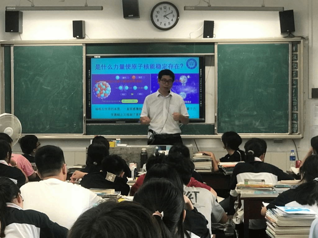 讲座先后以《探秘原子核》、《探秘原子核微粒世界》为题,从原子核是什么、科学家为什么要作原子核研究、科学家是如何研究原子核的、原子核辐射与原子核技术利用等几个方面,向同学们生动地介绍了原子核的基本性质、核物理大科学装置、原子弹与氢弹工作原理、核辐射与成像技术基本知识。报告以形象有趣的图片,从科学问题出发,带领大家解读科学家探索未知世界的心路历程,理解国家意志与科学家精神之间的关系,引导青少年同学们树立“现象观察-提出问题-论证分析-理论”的科学活动思维。