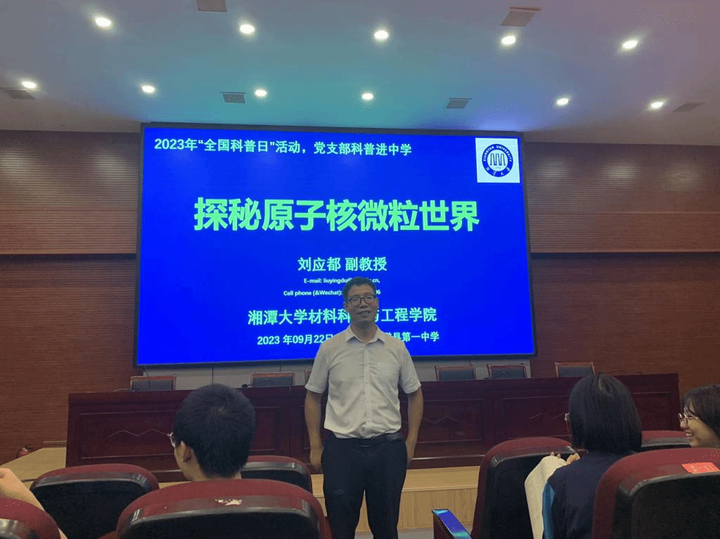 少年儿童是祖国的未来,是中华民族的希望;少年强则国强,少年进步则国进步。为培养中学生好奇心和对科学的热爱,在2023年全国科普日期间,我院教职工第二党支部书记刘应都副教授于9月17日-23日分别在邵阳市隆回县紫阳中学、隆回县第九中学、怀化市通道县第一中学,开展了多场关于科学与生活的科普讲座,共计400余名师生参加科普讲座。