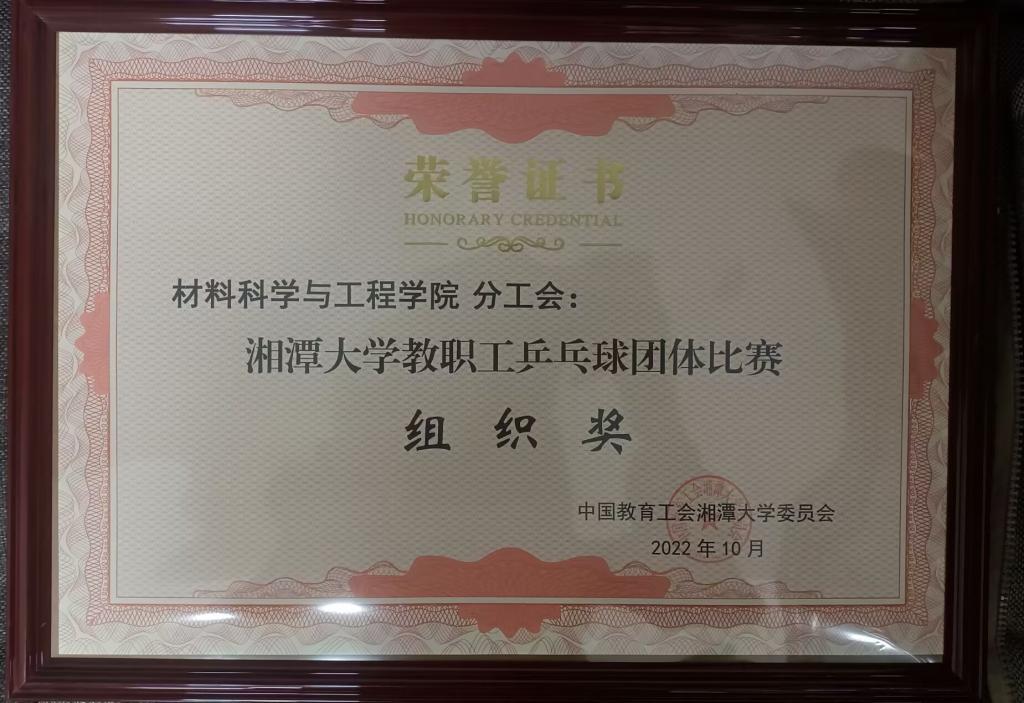 金秋十月,硕果累累,参赛选手挥汗如雨,观众热情似火,经过多日角逐,我院分工会荣获湘潭大学教职工乒乓球团体比赛组织奖。此次活动丰富了教职工的业余文化生活,增强了我院教职工的凝聚力,更激起了大家锻炼的热情。