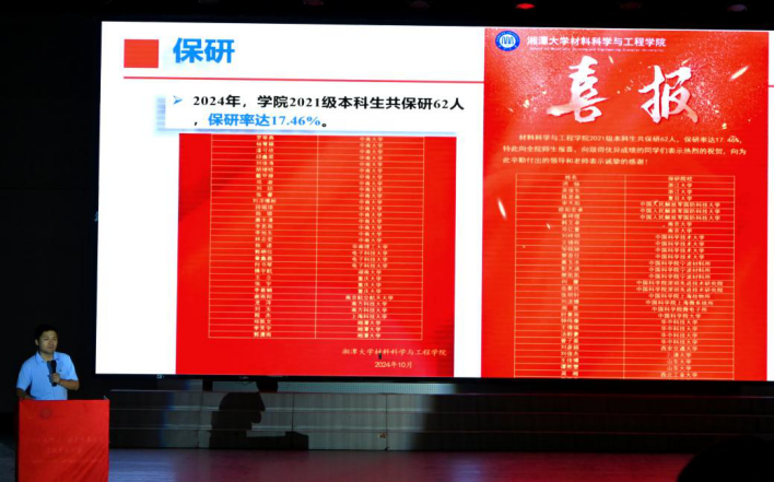 随即,三位优秀的21级学生代表就保研、考研和就业分别分享了自己的经验。宋天阳同学系统梳理推免全流程,从材料准备到考核环节逐一讲解;韩欣茹同学则结合自身求职经历,讲解如何精准匹配岗位需求制作简历,突出相关项目经历和技能证书,分享面试中快速破冰、结构化回答问题等技巧;唐君玲同学分享了考研备考攻略,按基础、强化、冲刺阶段分别介绍搭建知识框架、真题精研、全真模拟的学习计划,为学弟学妹们提供了清晰的备考方向。