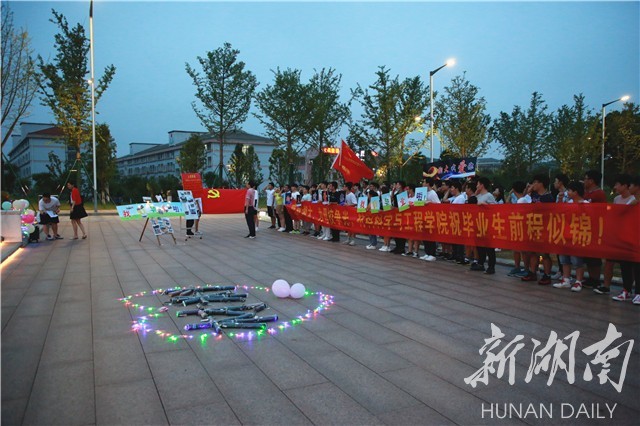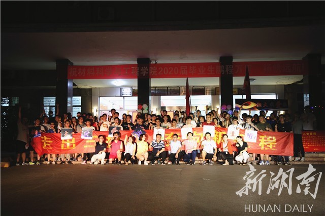 “今晚,老师们打开了车灯,为我们照亮了前进的路,将来,身披五彩之光的我们,会行反哺之情,我们在哪都会铭记:谢谢湘大,谢谢材料院!”当晚,材料科学与工程专业张一鸣写下了一段话。