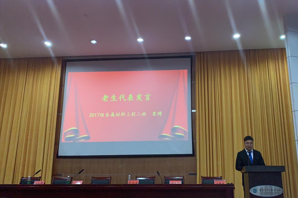 老生代表栗博希望新生在埋头苦读之余,能够将目光放远至全国乃至世界,关注国际材料领域最新动态和科学前沿,尽早确立远大理想,担负起中华民族伟大复兴的使命和责任。新生代表潘宇晗则表示将与20级全体新生一起,不负祖国重托,牢记肩上使命,将“爱国奉献、科研兴国”谨记于心,为中国材料新技术的发展进步做出贡献。