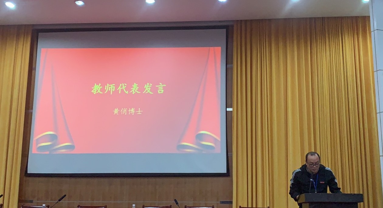 教师代表黄俏博士从中兴、华为两大科技企业在芯片领域遭遇的技术壁垒出发,生动阐述了关键核心技术是要不来、买不来、讨不来的道理。他结合当前材料科学专业的技术研发最新动态,讲述了半导体材料、炭基纤维材料仍存在被欧美国家“卡脖子”的现状。他希望同学们珍惜四年光阴,心系国家,用自己这一代特有的想象力,扎实的基本功,丰富的创造力,努力推进材料科学关键技术的突破。
