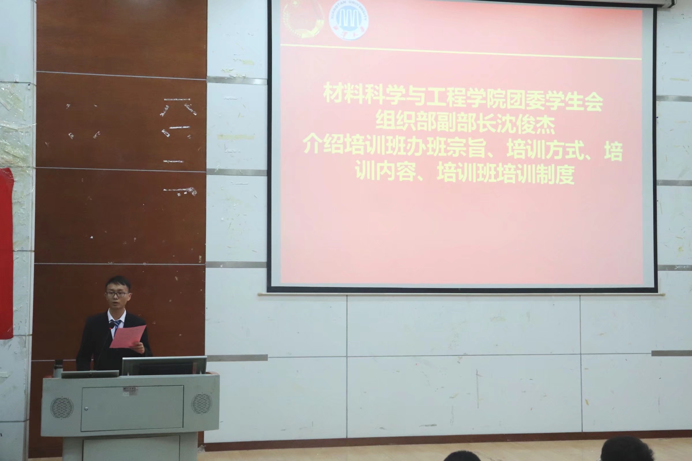 材料院组织部副部长沈俊杰详细介绍了培训班的办班宗旨、培训方式以及培训内容,并对培训过程中的考勤、奖惩等制度作出了明确规定。学员代表王凯禹表示,团校是学员学习先进思想、提升理论水平的大舞台,学员们应当珍惜团校学习机会,严格要求自己,努力提高自身思想文化水平。