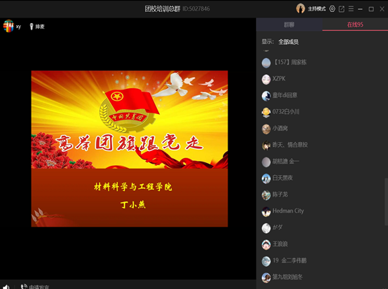 4月18日上午,我院举行了第十二期团校培训线上第一二次授课活动。本次培训以“高举团旗跟党走”为主题,团委书记丁小燕线上授课,全体团校学员参加授课。