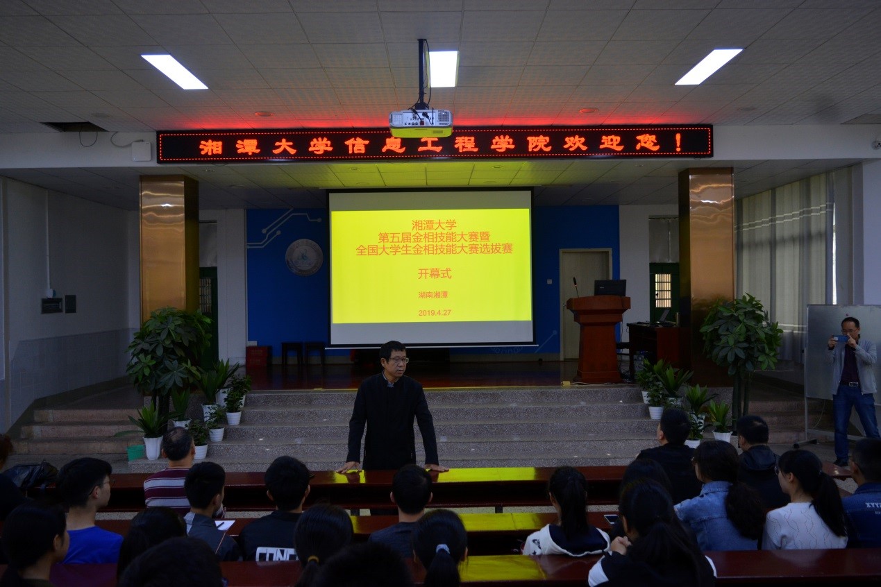 4月27日上午,湘潭大学第五届金相技能大赛开幕式在工科楼阶梯教室举行。材料院执行院长尹付成出席开幕式,我院教师、评委及百余名参赛选手参加开幕式,开幕式由王鑫铭老师主持。
