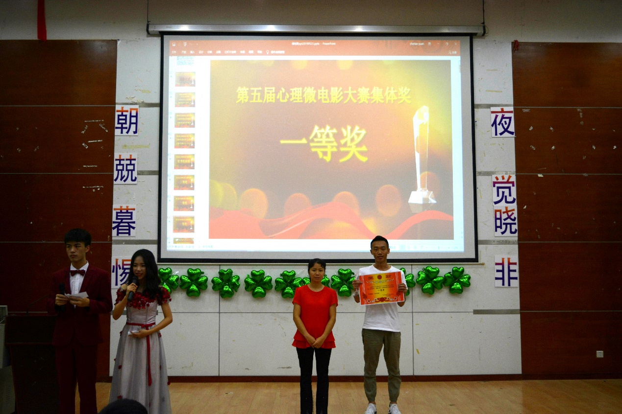 18级各班依次进行了微电影展示及合唱、舞蹈、相声等丰富多彩的拉票表演。本次大赛经评委现场打分,最终产生并颁发了一、二、三等奖、最佳导演、最佳剪辑、最佳男主、最佳女主及优秀心理班级等奖项。