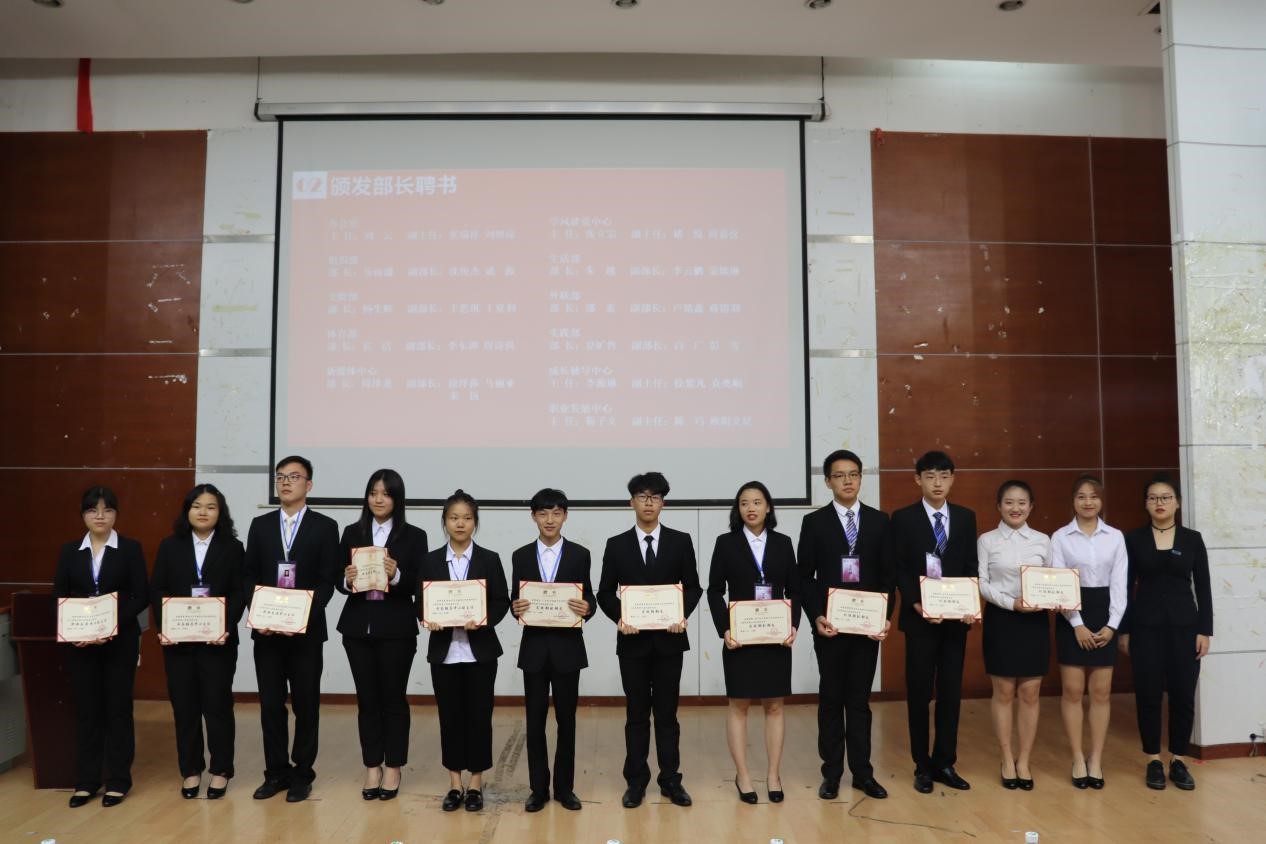 会议开始,全体起立,奏唱共青团团歌。随后,主席团成员为辅导员助理及各部门部长颁发聘书。