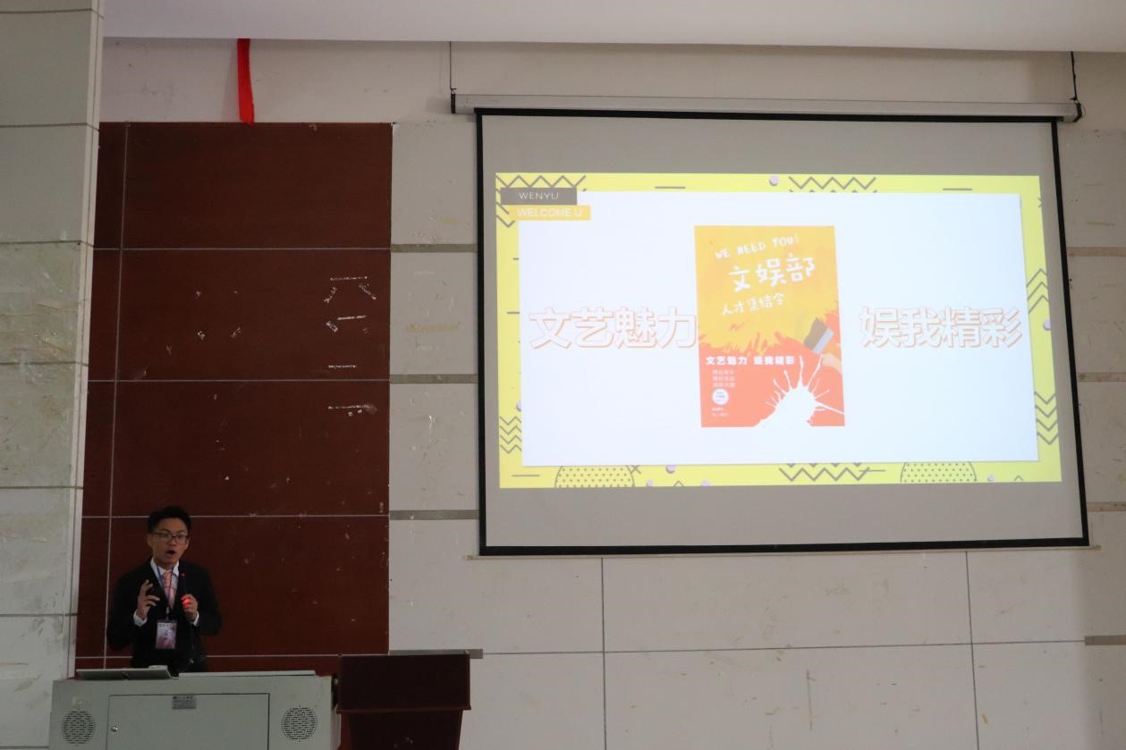随后,各部门部长通过精美的PPT、视频向新生介绍其所在部门的职责内容、特色活动,展示部门取得的成就。不少部长还以演讲的形式分享自己加入团学组织获得的成长感悟,鼓励新生积极加入团学队伍,在服务老师、同学的过程中锻炼自己,提升自己,激扬青春梦。