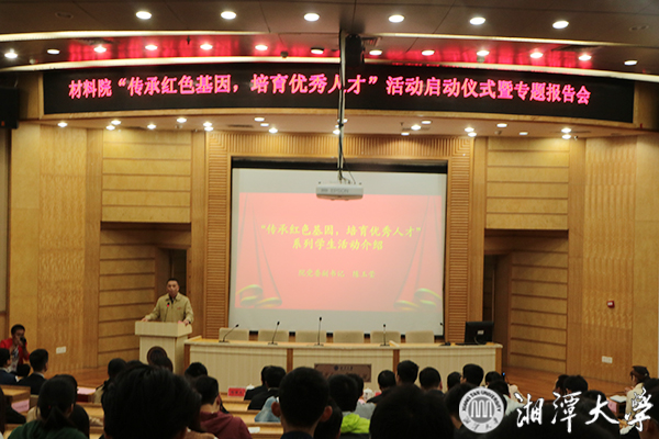 10月16日,yl23455永利官网“传承红色基因,培育优秀人才”系列活动启动仪式暨专题报告会在图书馆报告厅举行。校长周益春、副校长刘建平出席。