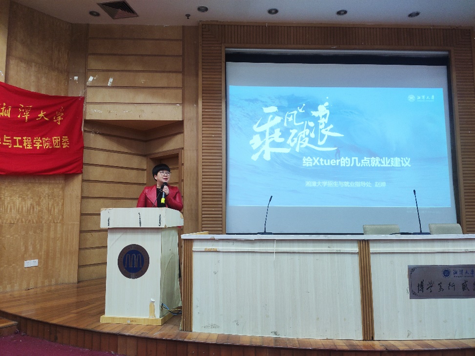 招生与就业处赵婵处长,从无业可就、有业不就、有业难就出发,对全国就业形势进行总体分析,勉励大家要不断拓展就业视野,将就业定位与服务社会、助推国家发展相结合,将个人兴趣能力与基层干事创业时代机遇相结合,将小我融入大我。她建议大家:一是要树立信心,准确认识当前经济发展形势;二是合理定位,找准奋斗方向,关注基层就业、自主创业及经济发展新态势;三是积极准备,拓展就业视野,积极投身于西部建设、基层服务,关注大学生志愿服务西部计划、疆藏就业、特岗教师等政策,勇担使命。最后,她鼓励大家“在技能和时间上做加法,在求职心态上做减法”。