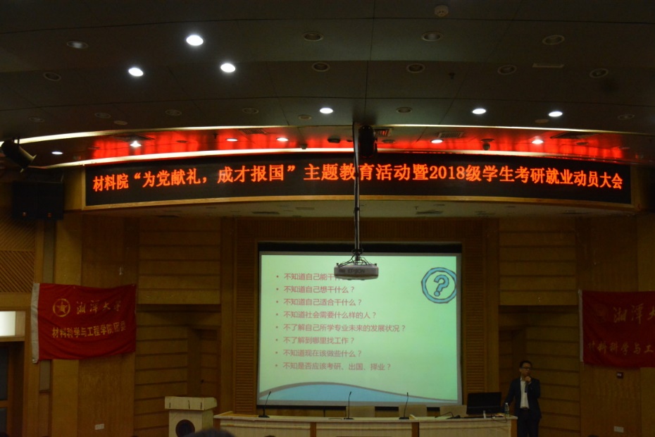 4月25日,yl23455永利官网在图书馆报告厅举办考研动员大会,邀请招生与就业指导处赵婵处长,院党委委员马增胜教授以及优秀毕业生代表开展考研与就业经验交流与指导,会议由院党委副书记陈玉莹主持,2018级班主任及该年级全体学生参加此次会议。