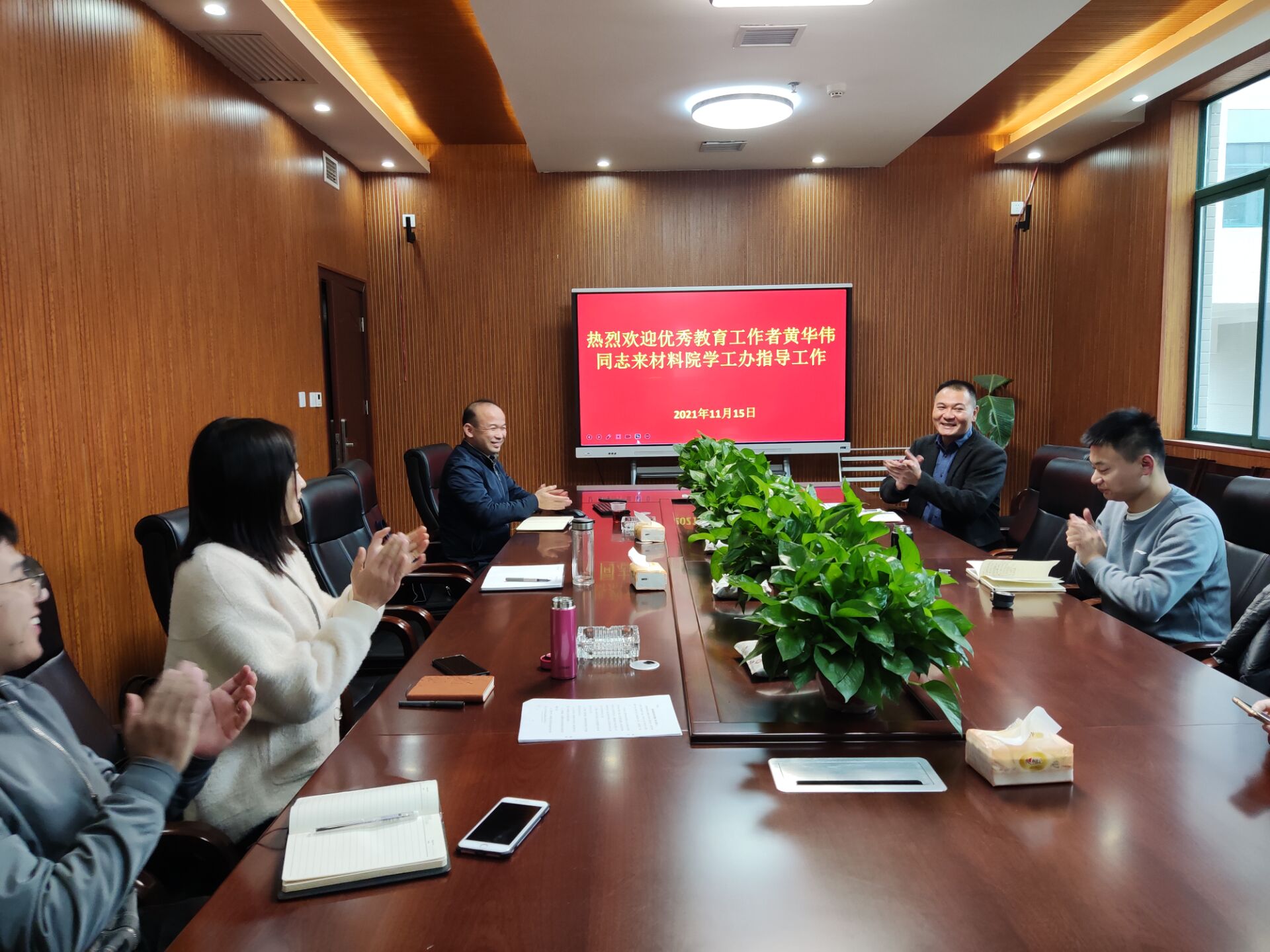 (与会老师对黄华伟副主任的到来表示欢迎)