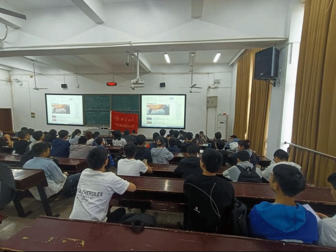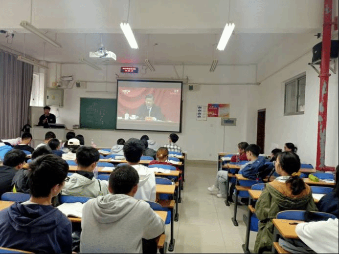 (21级金材二班在教室观看线上直播)