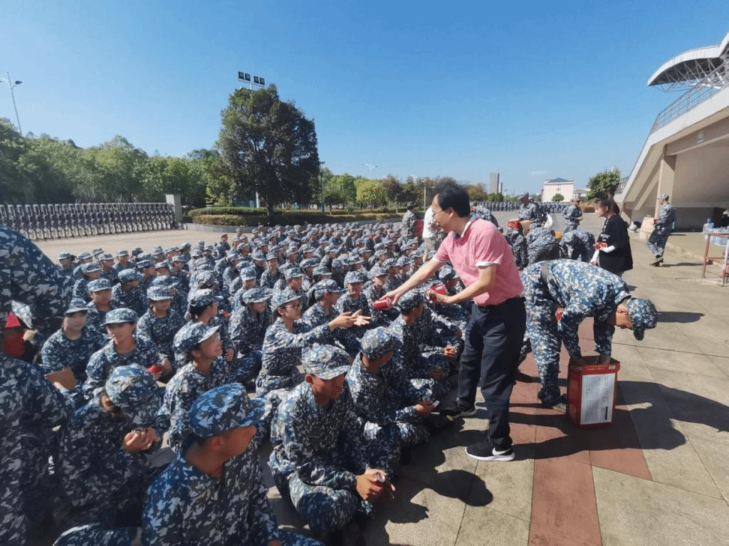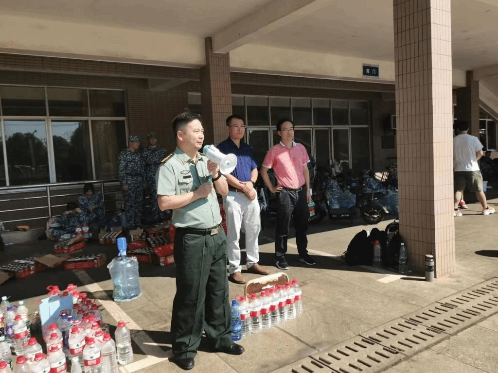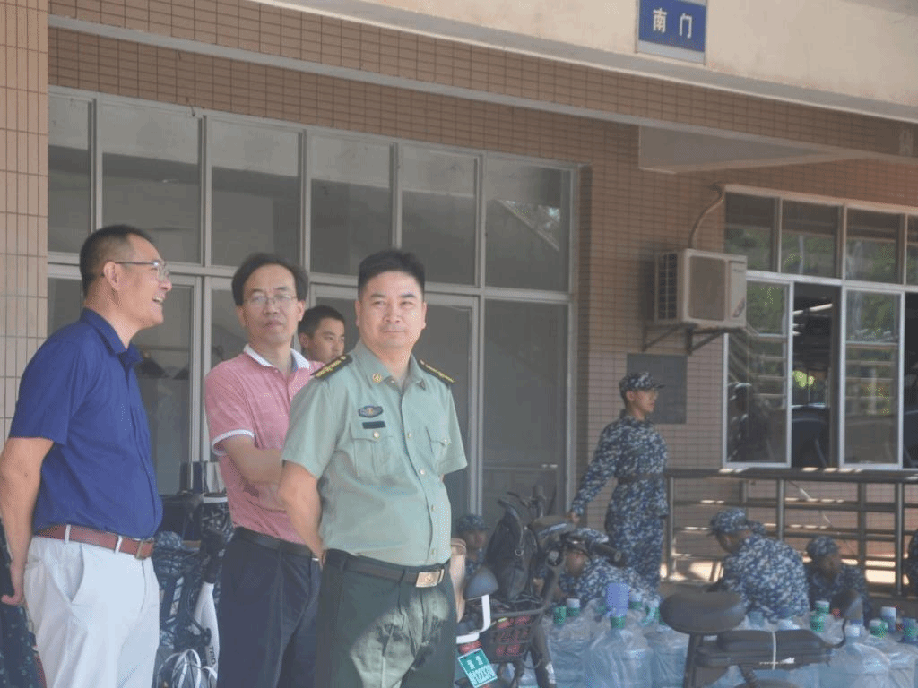 随后,领导们开始为同学们分发凉茶,为在酷热中军训的新生们带去些许清凉。领导们也希望这一丝清凉可以更好地激励同学们在军训中好好锻炼,以更加饱满的精神状态完成好本次军训。