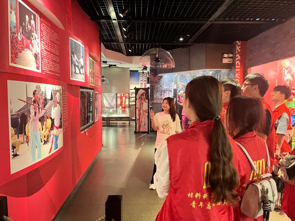 调研团队跟随常德市非物质文化遗产保护中心副主任陈云走进展厅,探寻非遗文化的踪迹。渔鼓悠扬、说鼓激昂、三棒鼓铿锵,每一项非遗技艺都是先辈们智慧与汗水的结晶,都是厚重中华文化的记忆载体。在文化馆特色装置的展示中,实践团成员不仅是观众,还是孟姜女、刘海砍樵的动人传说的“参与者”,重温了这些历久弥新的故事,见证了高腔花鼓戏的悠久历史,深刻理解了每一项技艺独特的文化价值与艺术魅力。团队成员们纷纷表示这次探访不仅是一次视觉与听觉的盛宴,更是一次心灵的洗礼。