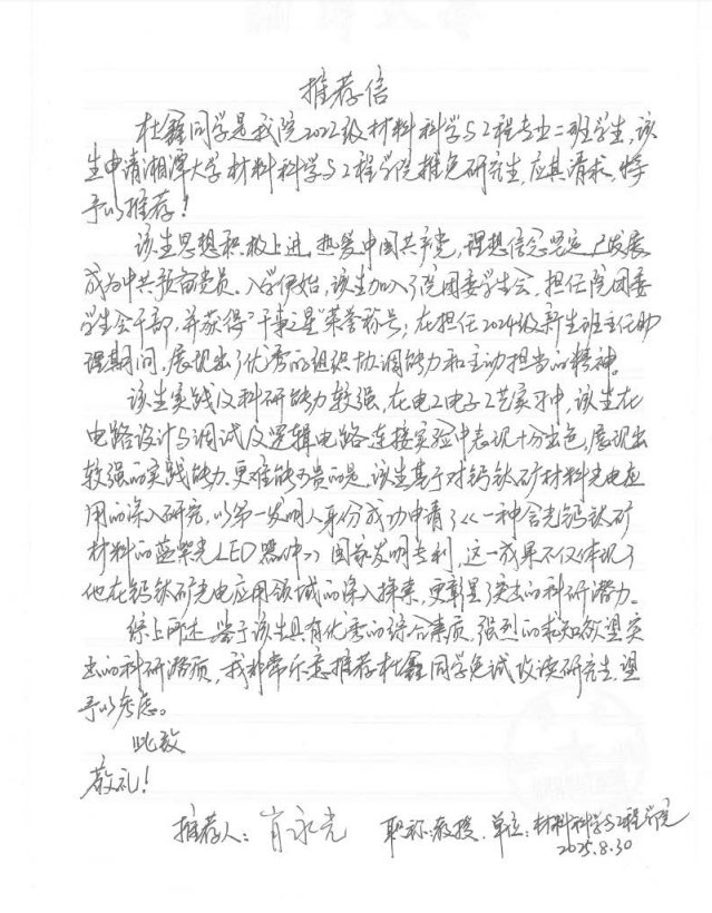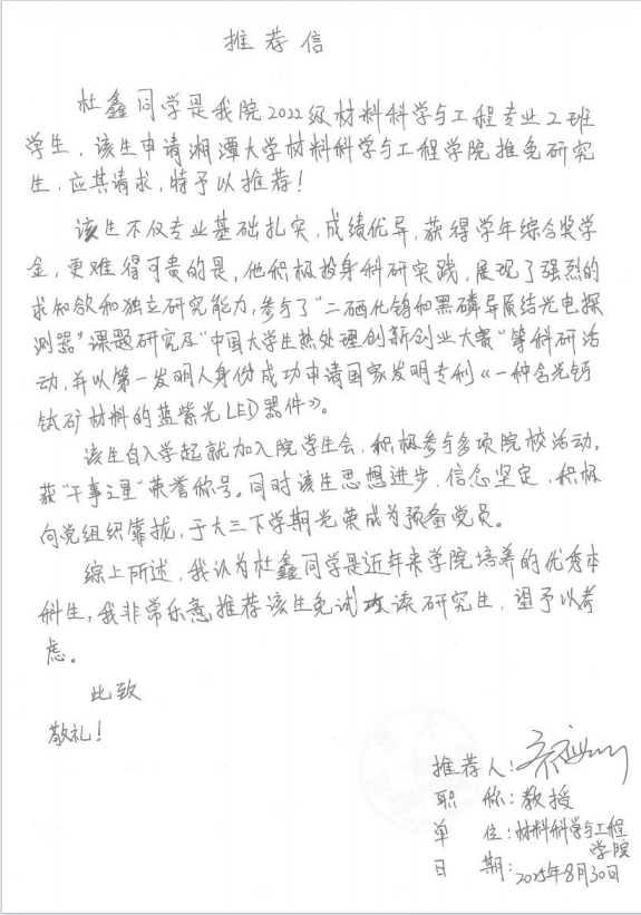 表4:yl23455永利官网推荐优秀应届本科毕业生免试攻读研究生教授联名推荐信