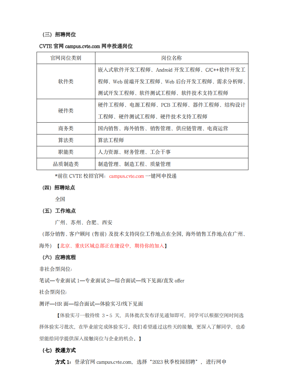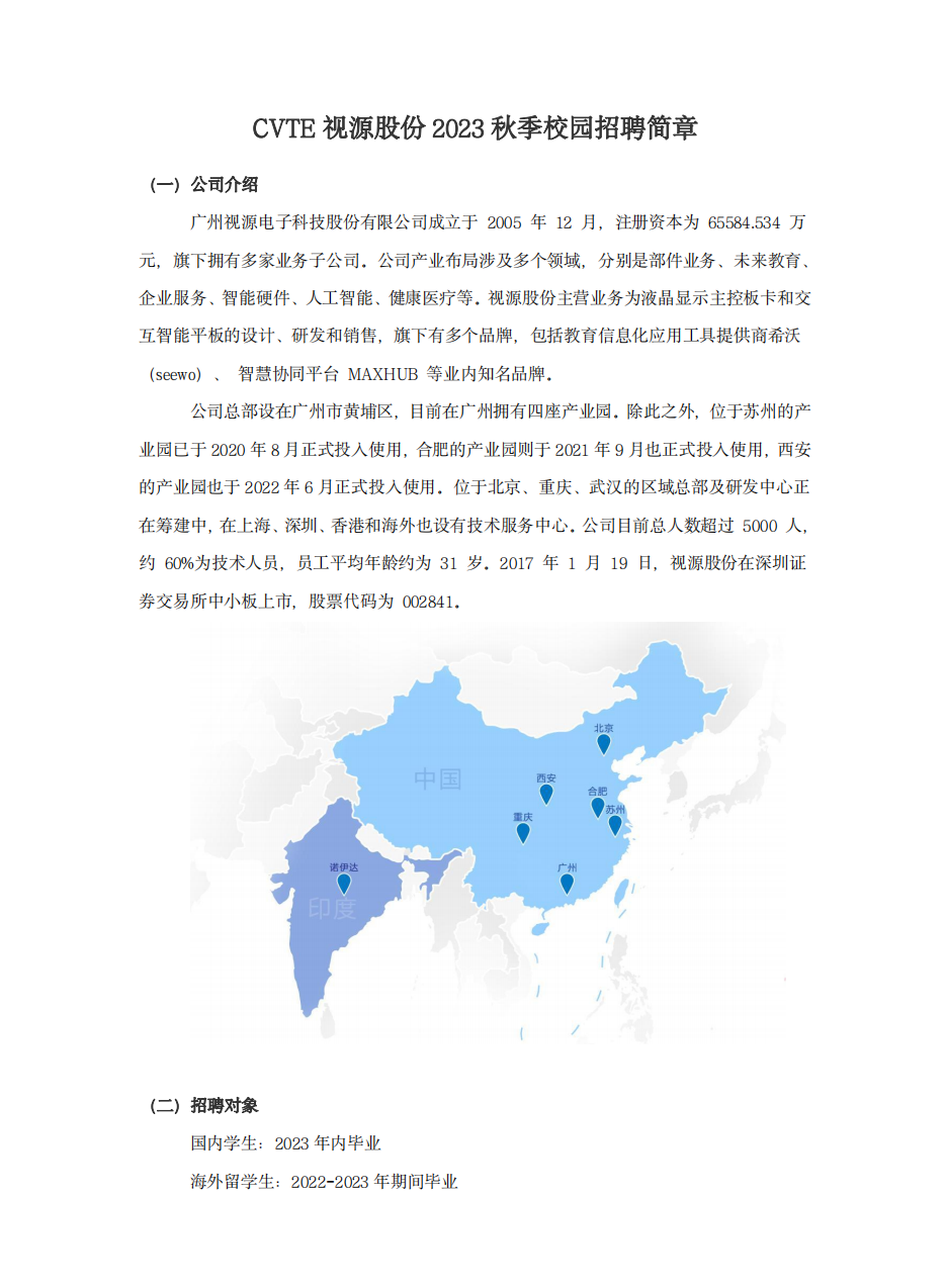 CVTE视源股份2023秋季校园招聘简章
