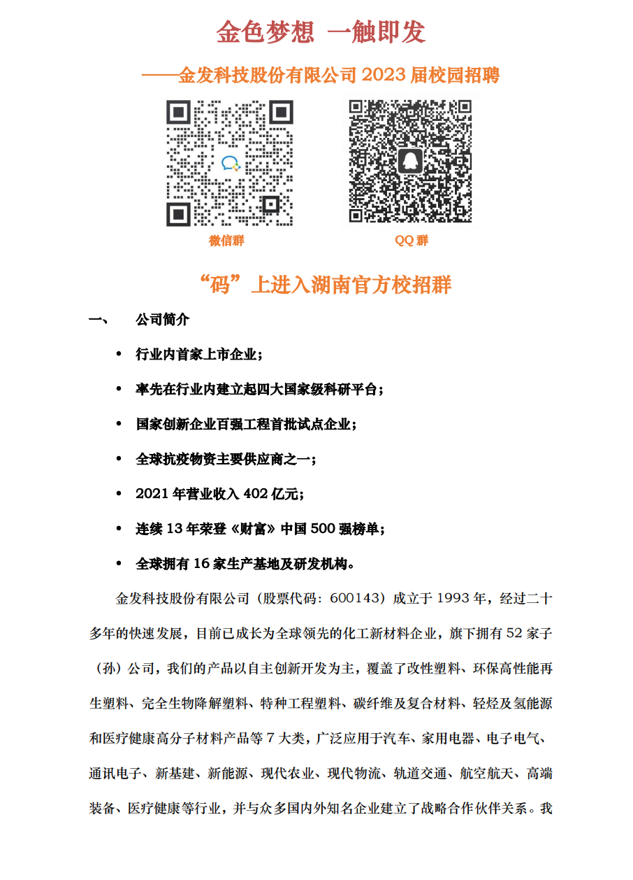 金色梦想一触即发——金发科技股份有限公司2023届校园招聘