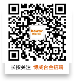 1、投递方式一,扫描公司招聘二维码(见右图),或搜索关注“博威合金招聘”公众号,点击“加入我们”-点击“校园招聘”-查找对应岗位进行投递: