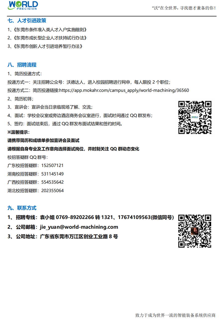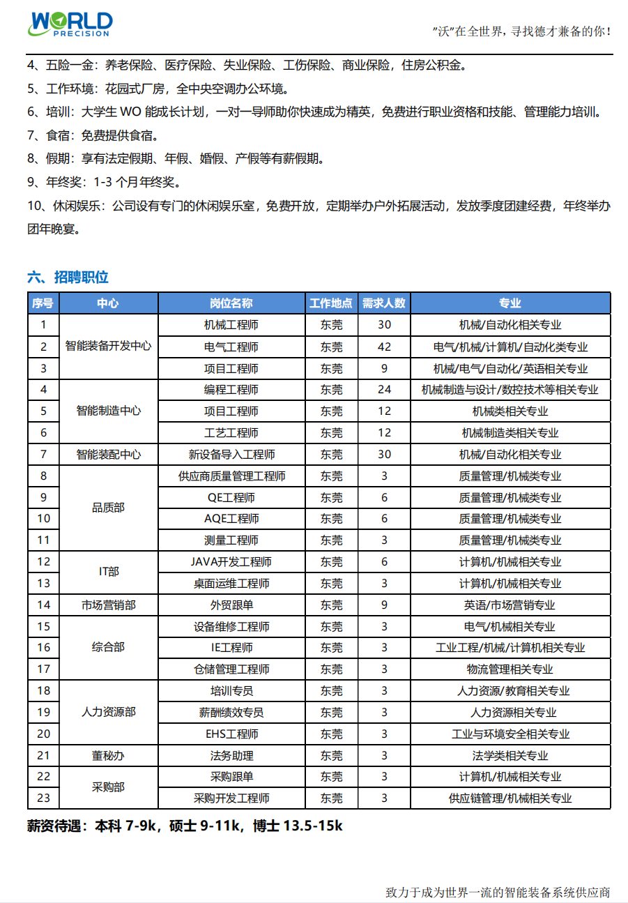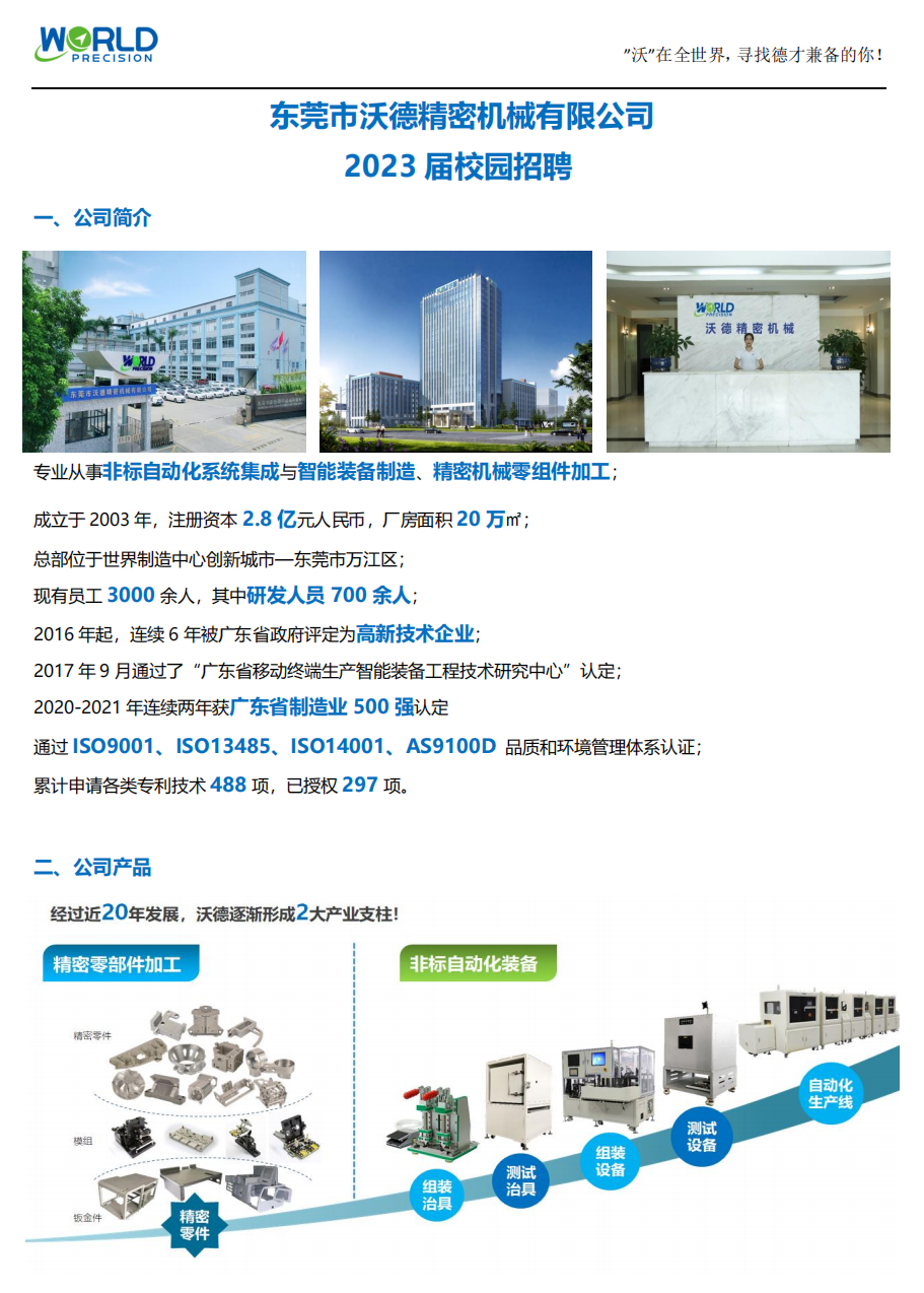 东莞市沃德精密机械有限公司2023届校园招聘
