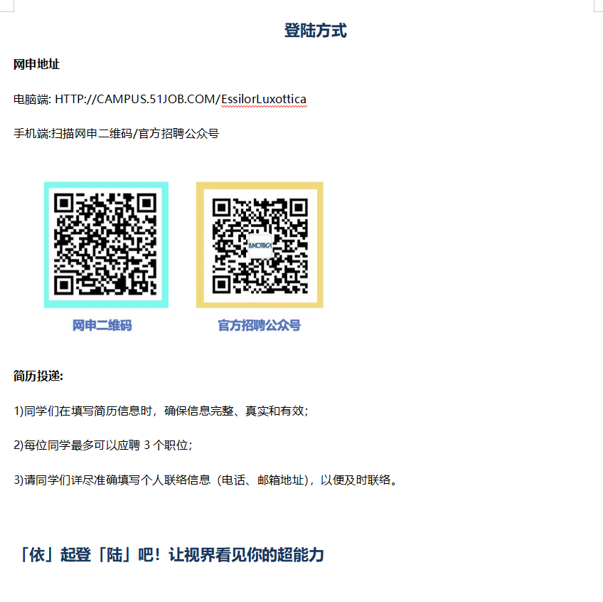 √ 学历:2023届毕业的本科生,研究生 √ 能力:优秀的主动沟通能力、快速学习能力、应变适应能力、问题解决能力 √ 技能:良好的英文交流能力,熟悉Office办公软件 |