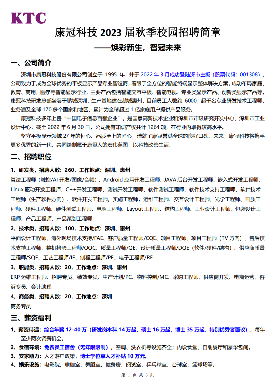 康冠科技2023届秋季校园招聘简章——焕彩新生,智冠未来