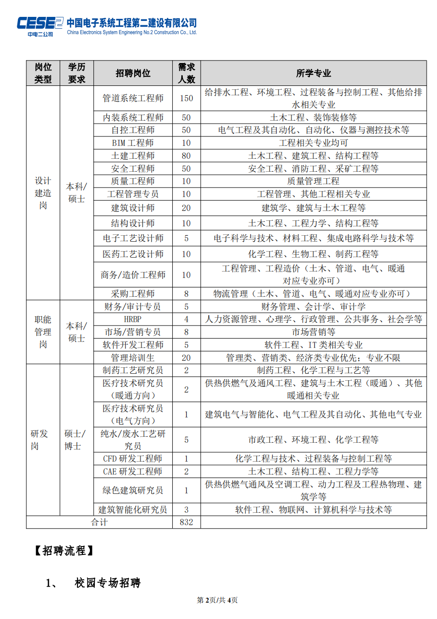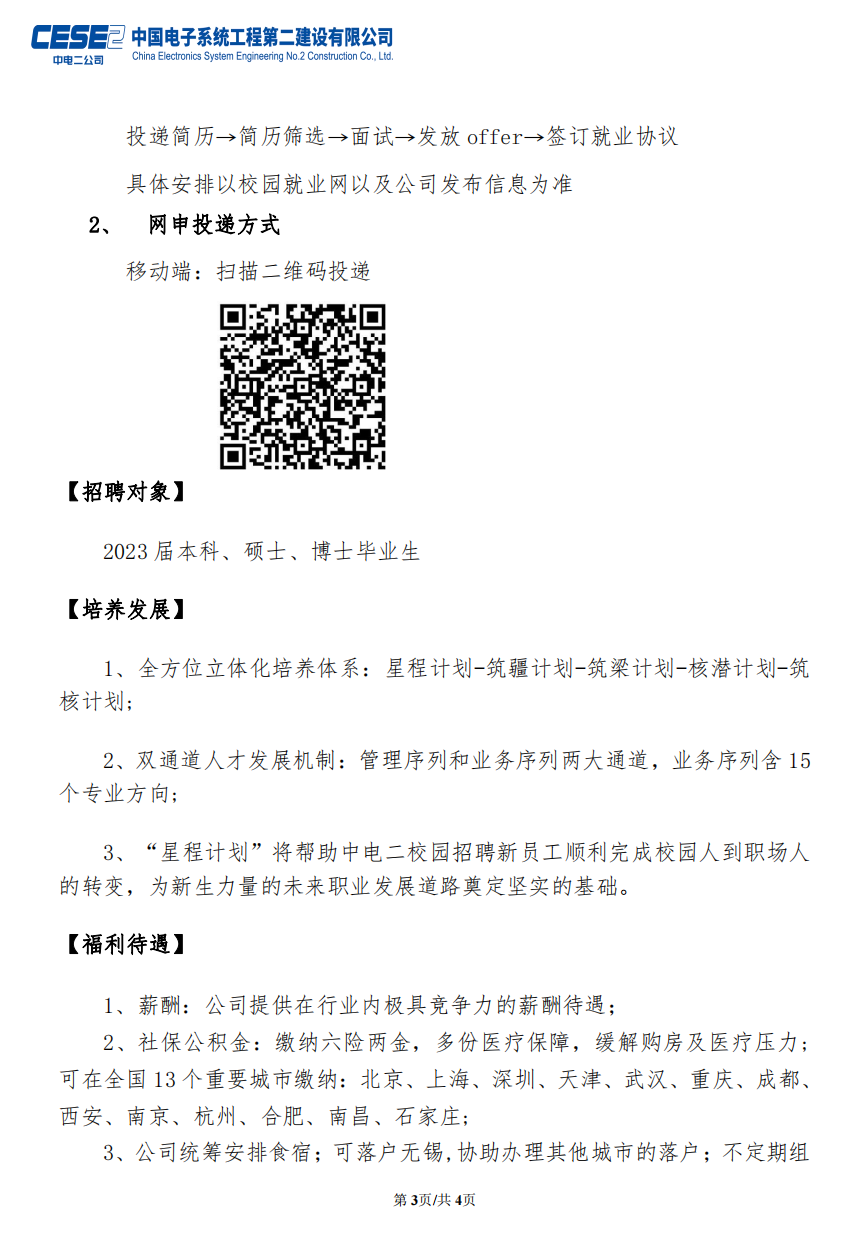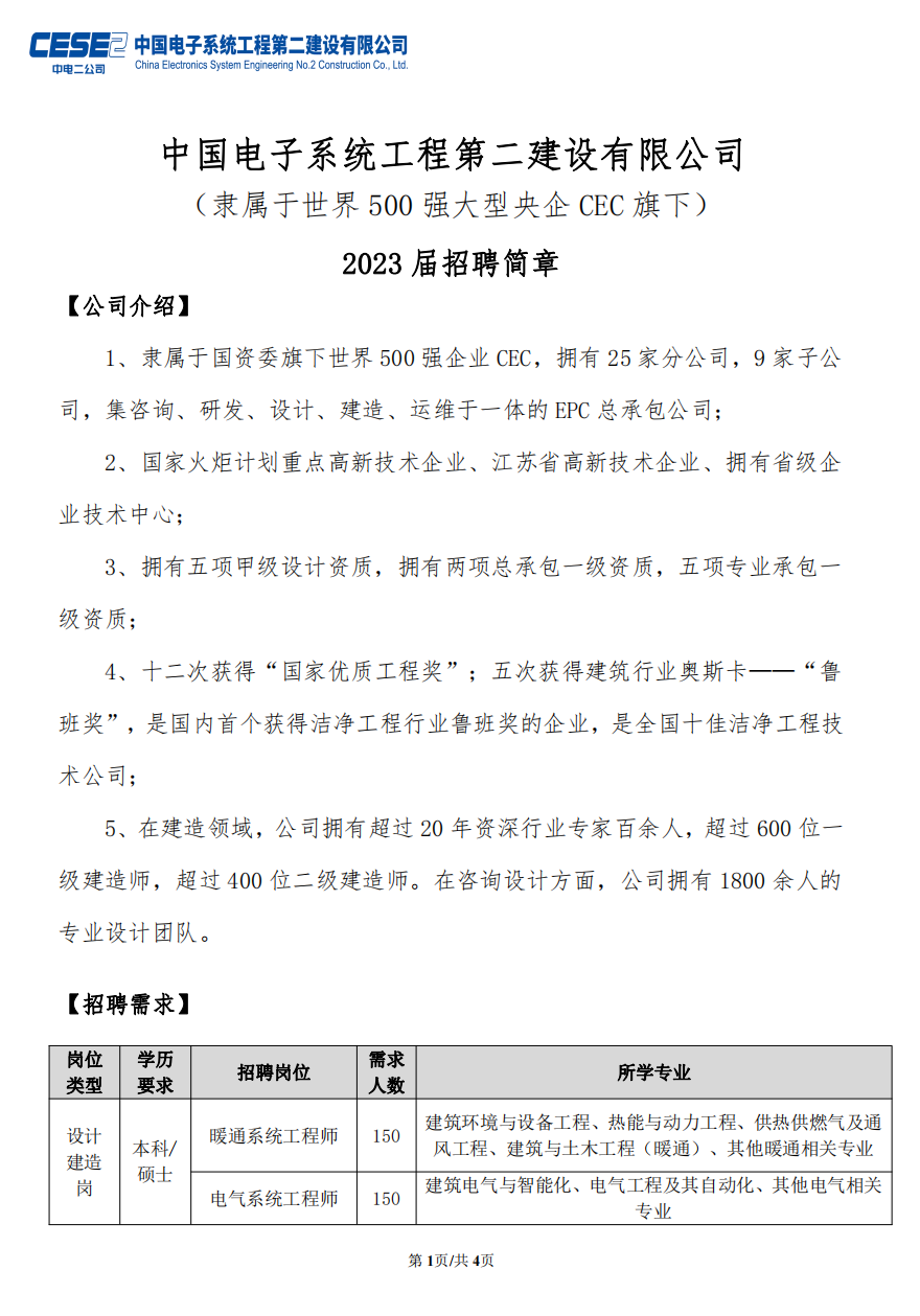 中国电子系统工程第二建设有限公司2023届招聘简章