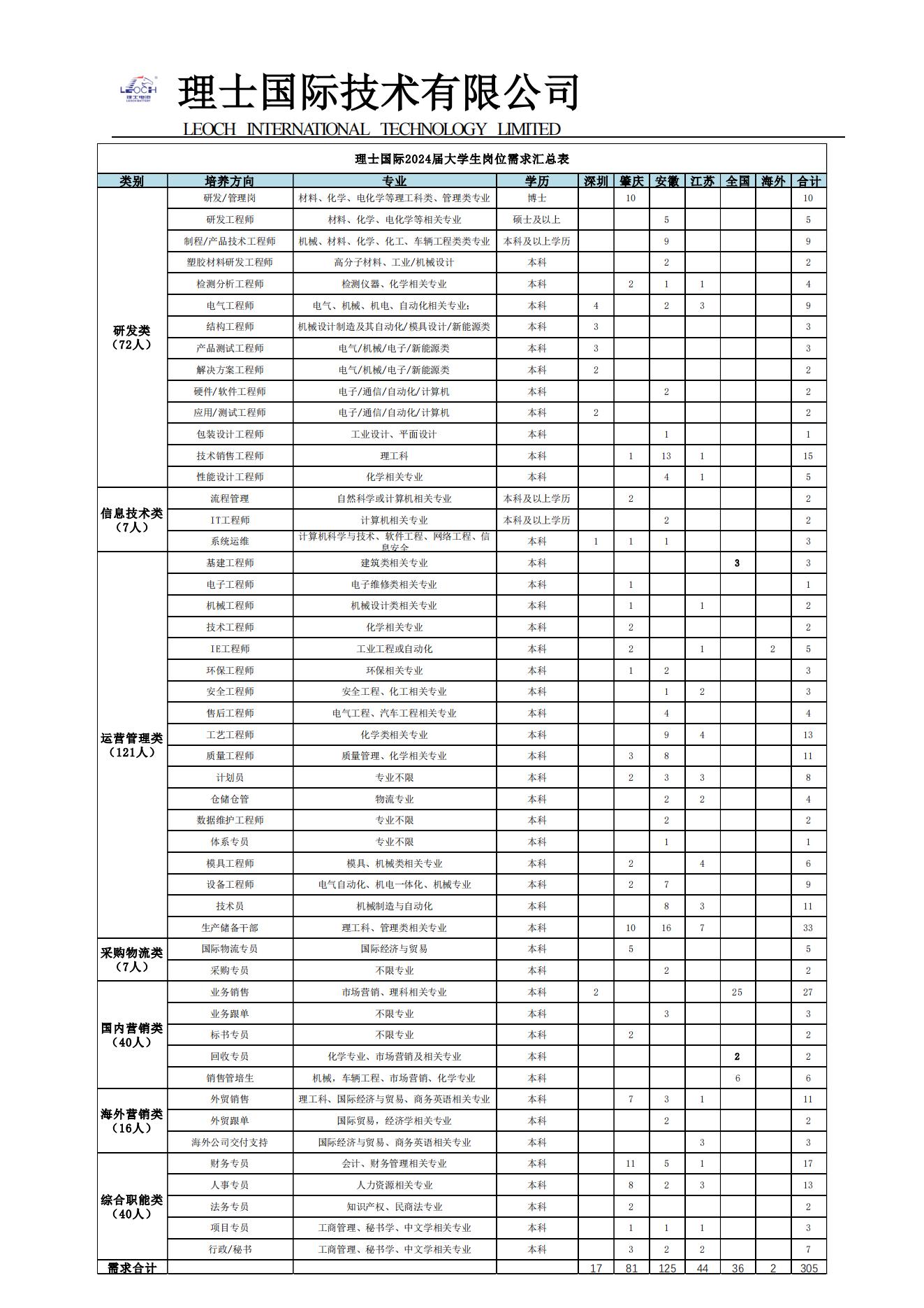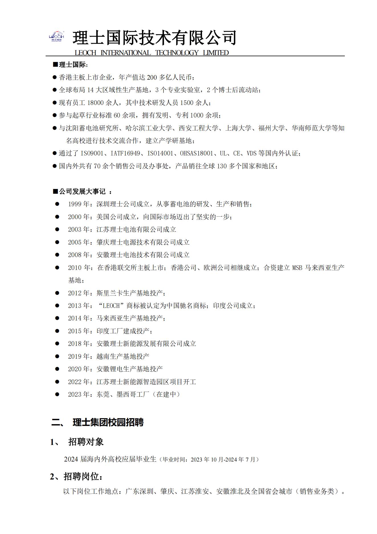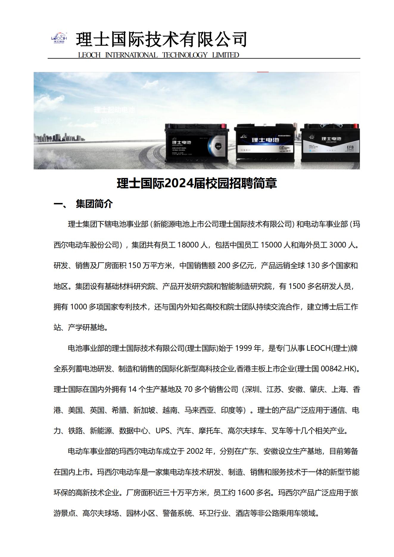 理士国际2024届校园招聘简章