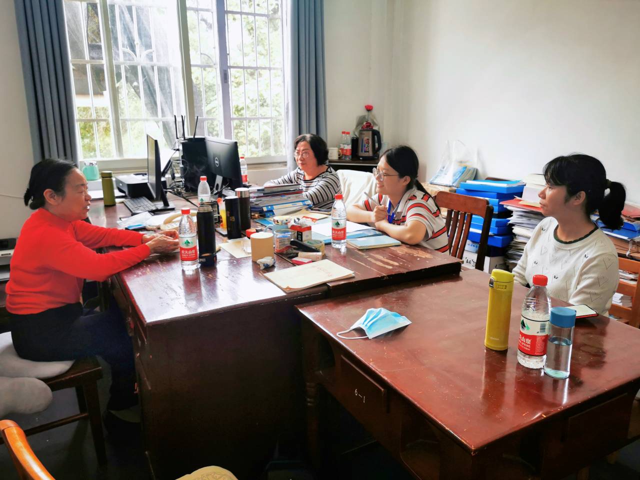 在二零一二年,时值退休之际的尹老师和李老师,又先后接过组织上赋予的新的使命,从退休生活中重新回到教育事业上来,而这一次的重新出发,一晃又是十年之久。这个十年,是她们对于中国共产党事业的又一次奉献,是他们秉持信念追求更高理想的再一次实践。回顾入党和参加工作的几十年,她们在中国共产党的教育和指导下不断成长、进步,在扎根教育事业的历程中不断挑战新的职位,她们也从飒爽英姿的青年成为了年过古稀的元老,在湘大近六十年办学以来,她们一同见证了湘大从偏远农村的一所不知名大学发展成为今天桃李满天下的重点本科;从漫天风沙满是泥泞的校园环境到现在蓝天白云绿树成荫网红打卡的校园。