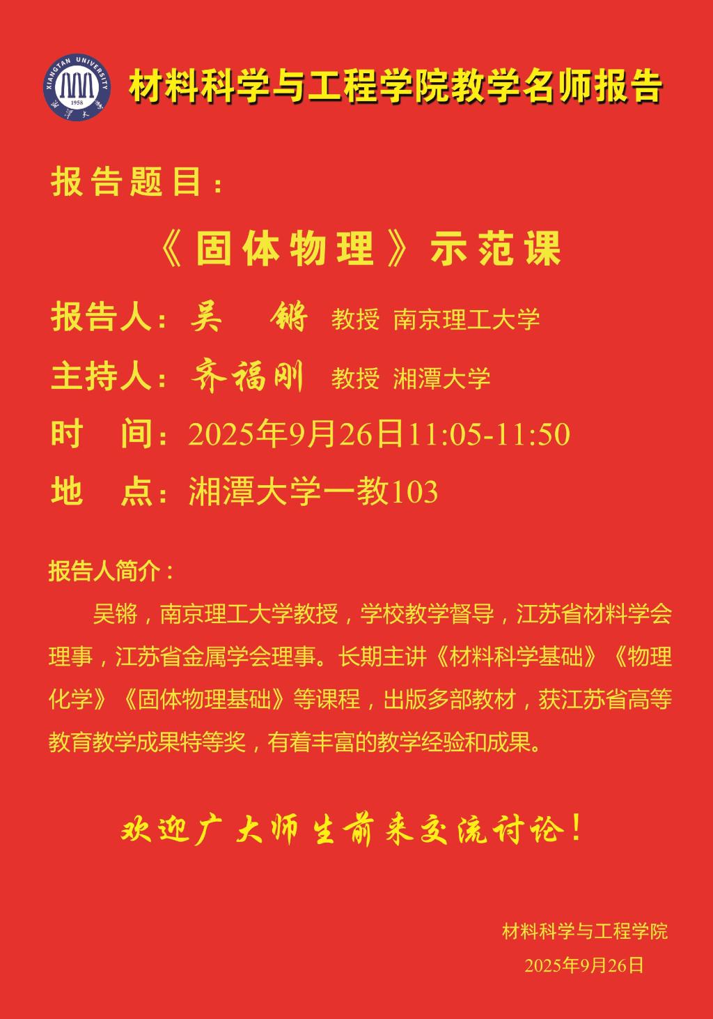 胡国彬 博士 美国纽约州立大学石溪分校 2018年7月21日(周六)上午10:30 二教319学术报告厅报告人简介: 胡国彬,男,湘潭大学物理专业1991级本科生,硕士是杨奇斌教授和郭可信院士联合培养的学生,博士师从中科院物理研究所彭... -